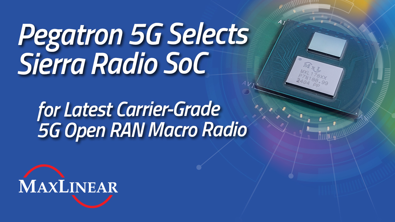 CARLSBAD, CA – (BUSINESS WIRE) October 7, 2025 – MaxLinear, Inc. (Nasdaq: MXL) a leading provider of wireless infrastructure solutions, today announced that Pegatron 5G has selected Sierra, the company’s single-chip Radio SoC, for their next generation PR2850 5G Macro Open RAN Radio Unit (O-RU). Pegatron is a global technology leader focusing on O-RAN-compliant solutions.