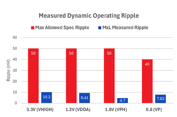Ripple characteristics remain well within SoC's tolerance thresholds, offering substantial design margin and ensuring reliable performance across full-load scenarios.