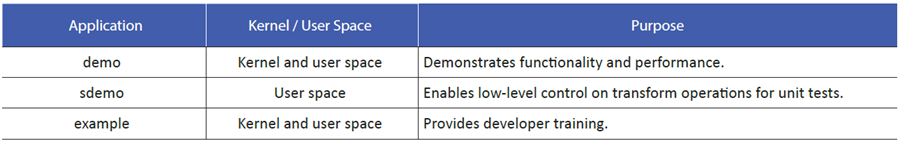 The SDK includes several applications to demonstrate the capabilities of the Panther storage accelerator.