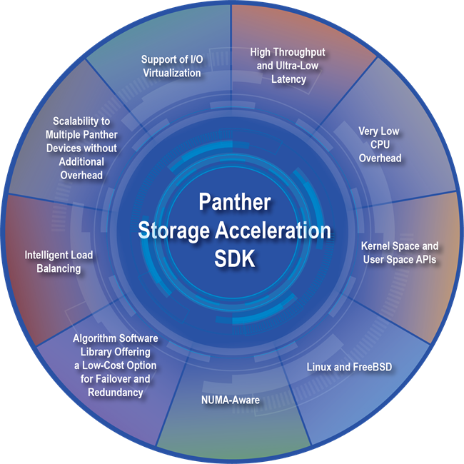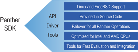 - The SDK and performance tuning tools allow software developers to quickly start working on software development and product-level integration of the Panther storage accelerators on their platforms.