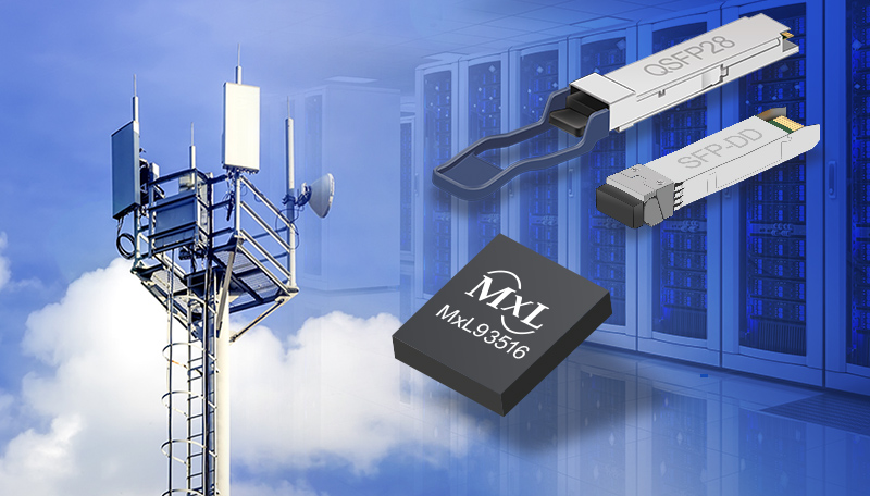 CARLSBAD, CA – September 18, 2019 – MaxLinear, Inc. (NYSE: MXL), a leading provider of radio frequency (RF), analog and mixed-signal integrated circuits for the connected home, wired and wireless infrastructure, and industrial and multimarket applications, today announced the extension of its Telluride 100G per wavelength PAM4 DSP family with the availability of the MxL93515 and MxL93516, optimized for 100G applications. These second-generation DSPs offer significantly lower power and smaller footprint, comfortably enabling sub-3.5W QSFP28 designs while also meeting the form factor needs of the smaller SFP-DD/DSFP optical modules. Like the MxL93512 and MxL93542 first-generation DSPs, the MxL93516 includes a monolithically integrated EA-EML laser driver.