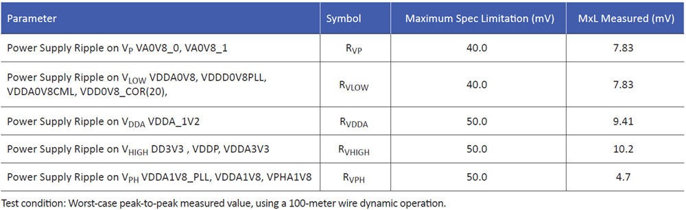 In full-load traffic tests on the MxL86282S platform, the power tree solution consistently meets ripple and stability requirements, demonstrating its robustness in demanding environments. With reduced noise and voltage fluctuations, measured load and line regulation errors remain below 1%. The layout-friendly design—featuring short power paths and local decoupling—enhances transient response and minimizes parasitic effects, making it ideal for OEM/ODM designs.