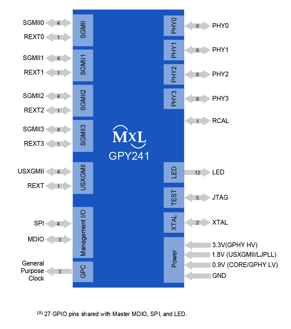 | Information | 2.5G Ethernet PHY (4 port), USXGMII-M |