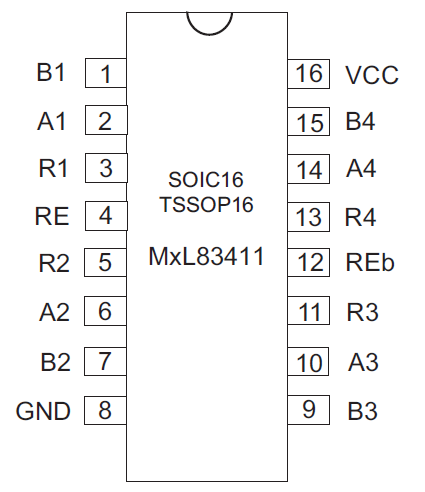 | MXL83411I-ADA-R | N | Y | Y | Y | Y | L2 / 260ᵒC | NSOIC16 |